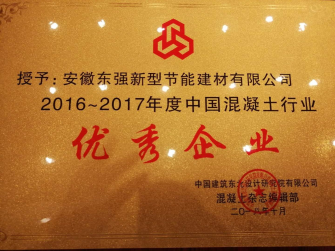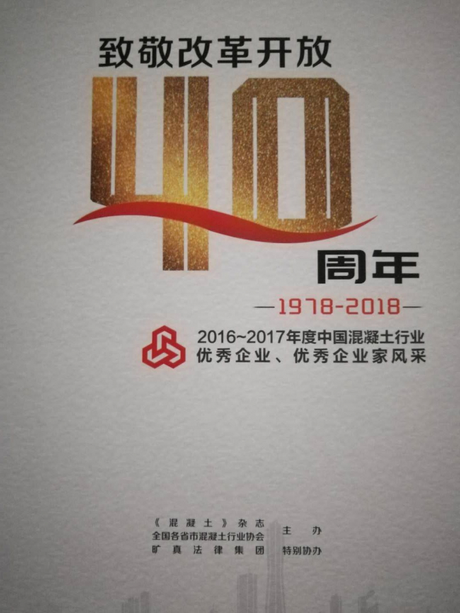 2018年10月21日至24日我公司領(lǐng)導(dǎo)赴浙江參與《2018年中國混凝土年會暨新時代混凝土行業(yè)綠色高性能發(fā)展論壇大會》,并在會上被評為2016——2017年度中國混凝土行業(yè)優(yōu)秀企業(yè)。公司積極參與行業(yè)大會,把握混凝土行業(yè)新技術(shù)、新發(fā)展、新導(dǎo)向,與時俱進,不斷創(chuàng)新。